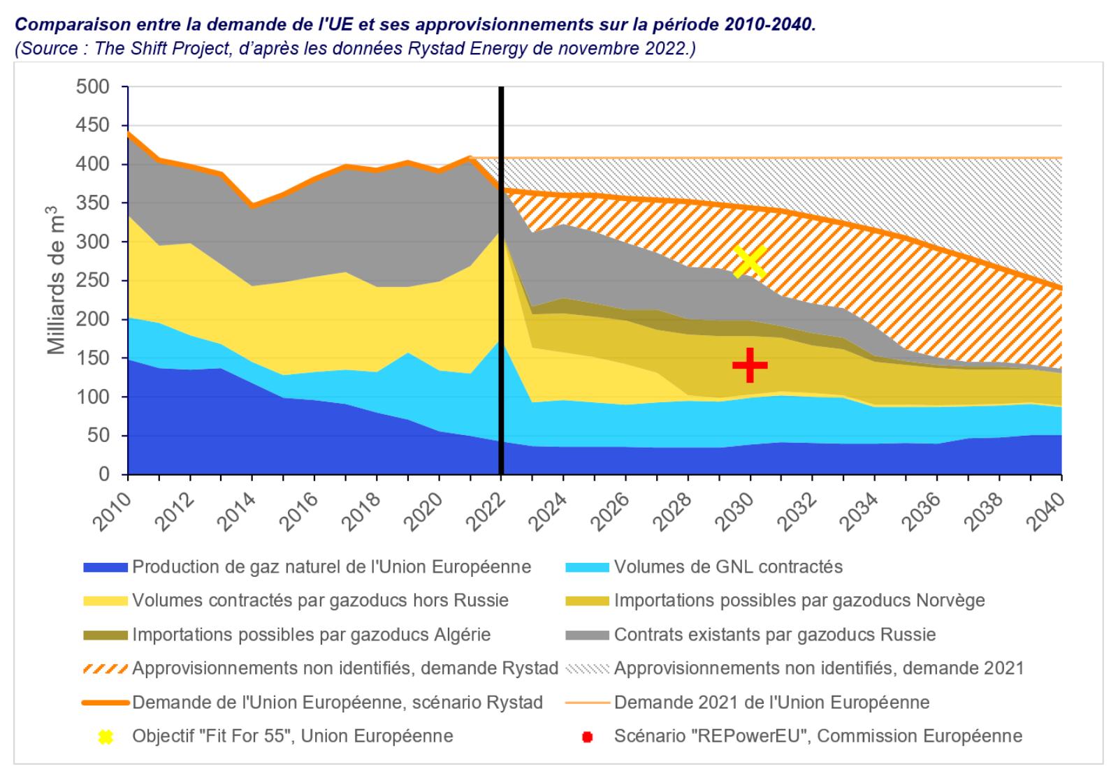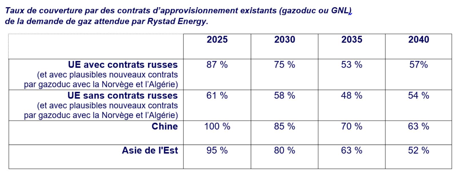 A l’heure actuelle, en cas d’arrêt durable des approvisionnements russes, la part des approvisionnements non-identifiés atteindrait en 2025 pas moins de 40 % de la demande de l’Union à cette date, soit l’équivalent des exportations actuelles du Qatar.