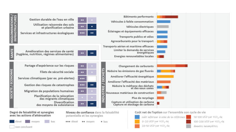 Des options d’atténuation et d’adaptation, efficaces et peu coûteuses existent déjà dans tous les secteurs.